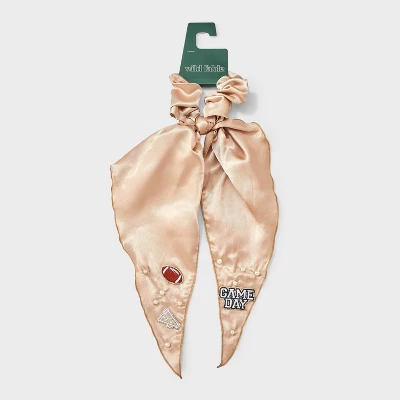 Game day hair twister from Wild Fable™ features football, trophy and “Game Day” text patches along with faux pearls. Made of recycled polyester fabric with tails. Suitable for all hair types.