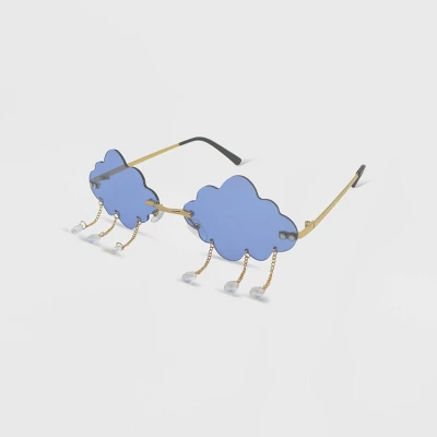 Novelty sunglasses from Wild Fable™ in a blue color. Features a cloud-like shape with studded stones dangling down from gold-tone chains. Metal frame with a rimless design creates a sleek look, while the adjustable nose pads make them comfortable to wear. UV protection lenses help keep your eyes shielded. One size fit most faces.