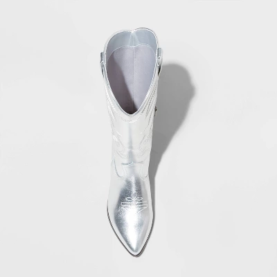 Faux-leather Western boots from Wild Fable™ set on a 1.5-inch heel with a smooth outsole. Designed with a pointy closed toe in a mid-calf height. Side zipper and pull tabs provide easy on and off.