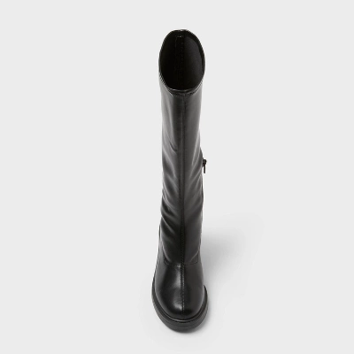 Danika tall stretch boots from Wild Fable™ in black. Made from polyurethane with memory foam insoles for comfortable walking. 2.5-inch block heel adds a statement lift to your height. Side zipper helps keep boots secured.