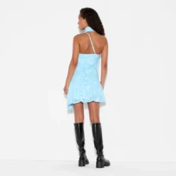 Sleeveless satin maxi A-line dress from Wild Fable™ in a solid shade with a Y-neckline and lace-trimmed accents. Features a halter strap with behind-the-neck tie for a customizable fit. Made from lightweight recycled polyester fabric for comfortable wear. Pull-on style completes the look.