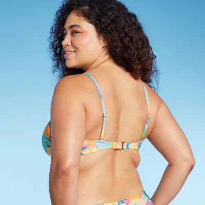 Scoop-front bralette bikini top from Wild Fable™ adorned with a vibrant tropical print. Made of soft, stretchy fabric and features removable cups. Back strap with a hook fastener and adjustable shoulder straps complete the look with a customizable fit.