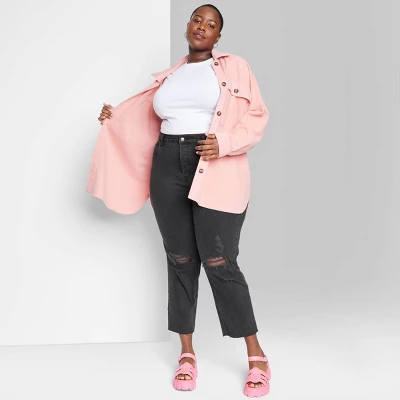 Ankle-length denim jeans from Wild Fable™ with a black-wash finish and distressed accents. Made of a cotton blend with a touch of spandex for all-day comfort. Tailored in a slim, straight fit with a sculpting, super high-rise cut, and sporting a belt-loop waistband with fly button fastening for a secure fit. Five handy pockets complete the look.